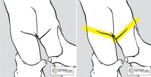 يُعد عدم تناظر الطيات الجلدية في منطقة الفخذين من أبرز العلامات المرئية لخلع الورك، فعندما يكون الطفل مستلقيًا على ظهره مع ثني الركبتين، ستلاحظ أن الطيات الجلدية على الفخذين ليست متماثلة، سواء في عددها أو موقعها بين الجانبين، ويشير هذا إلى خلل في موضع عظم الفخذ داخل تجويف الورك.